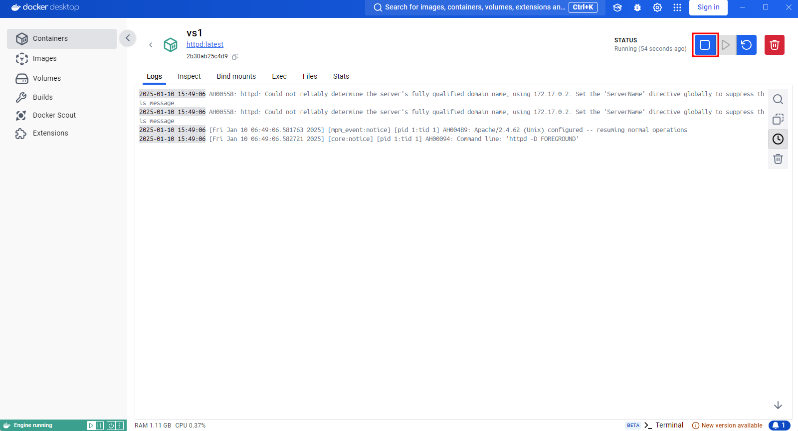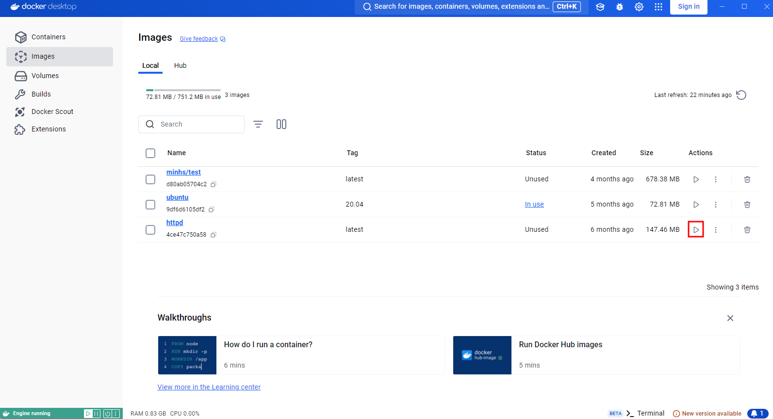 Docker Desktop에서 만들어진 이미지를 실행시켜 컨테이너를 만들어 준다.
